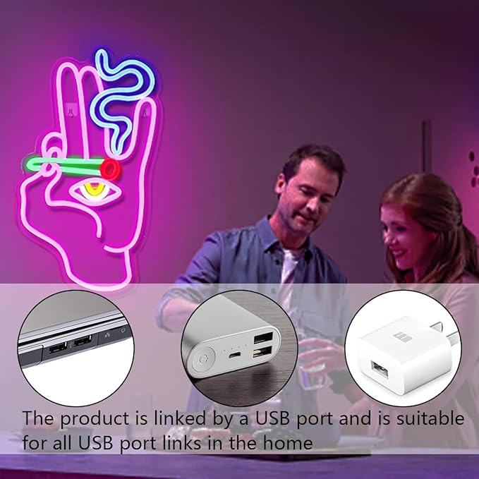 • High Quality Neon Sign: Hand eye neon light signs are made of silicone tube+led neon strips +acrylic back plate. Led neon signs is bright, noise free and energy-saving,5V low voltage, long life, no risk of too hot or glass damage.