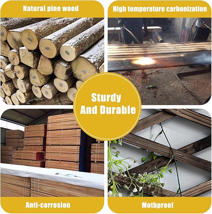 • 【STURDY AND DURABLE】: Wood trellis has been treated with carbonization, Adopt Pine wood production, The grid-like design has better load-bearing capacity long lasting, Its flexible characteristics make it more widely used, garden fence, wall trellis, small animal fence, trellis for climbing plants outdoor.