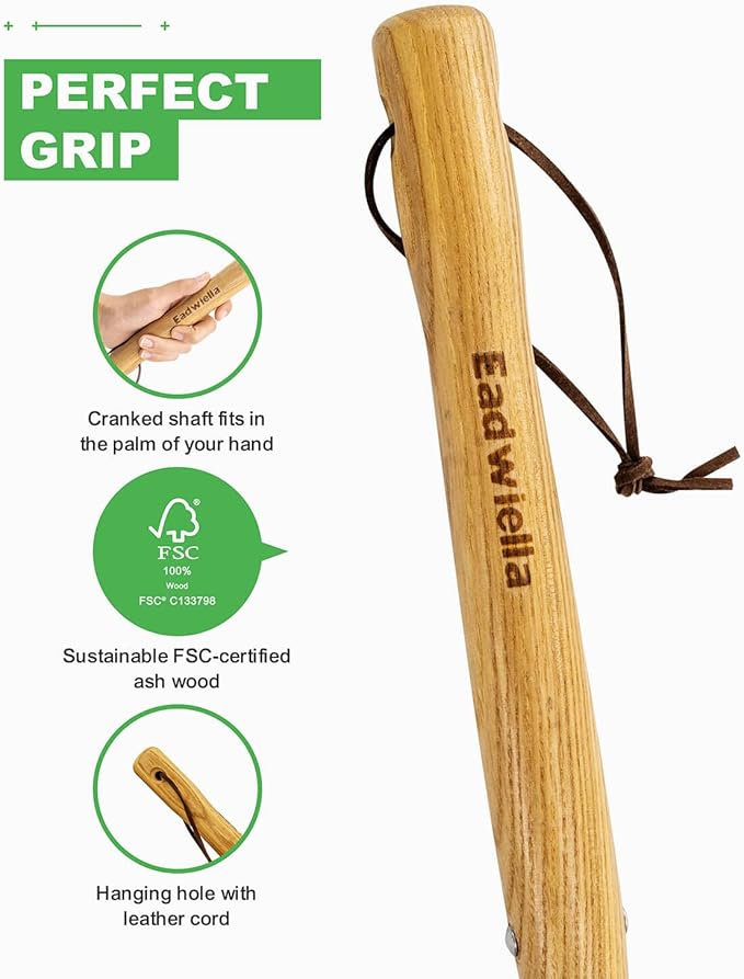 • COMFORTABLE HANDLE - The ergonomically designed hardwood handle provides a comfortable grip, reducing hand stress and tension. Hole on the handle allows hanging display and storage.