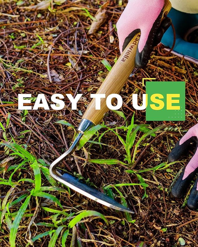 • UNRIVALED QUALITY - This hand hoe is hand-forged from stainless steel and fitted with ash hardwood handle for long lasting sharpness and durability. Short, compact, it can be easily stored in any tool bag, shed or garage.