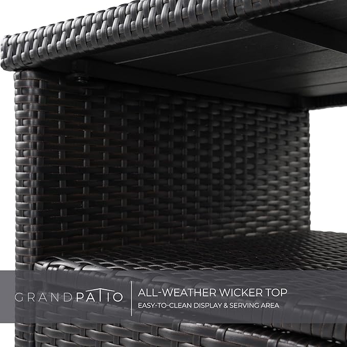 Grand patio Wicker Storage Cabinet Outdoor Waterproof Buffet Cabinet Patio Bar Table with Two Doors and Shelves Wicker Sideboard for Garden Kitchen Pool Dark Brown
