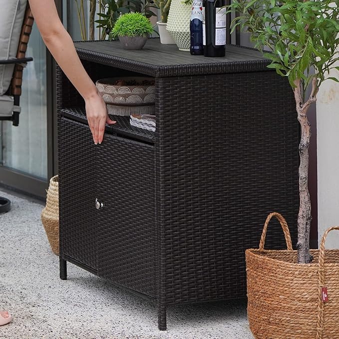 • VERSATILE & FLEXIBLE STORAGE: Are you looking for a storage cabinet for home tidy and saving space? Our versatile wicker storage cabinet is the ideal choice. It can be used as an outdoor bar, potting station, or kitchen island with elegant and versatile design