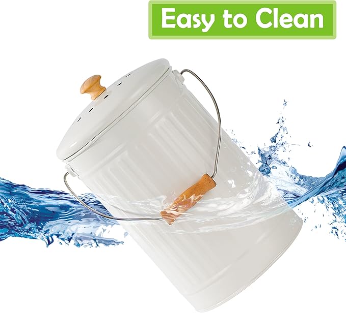 • 🗑VERY EASY TO CLEAN: The smooth lacquer finish is very easy to clean, just wash the compost bin with warm soapy water and gently wipe the lid with a damp cloth.
