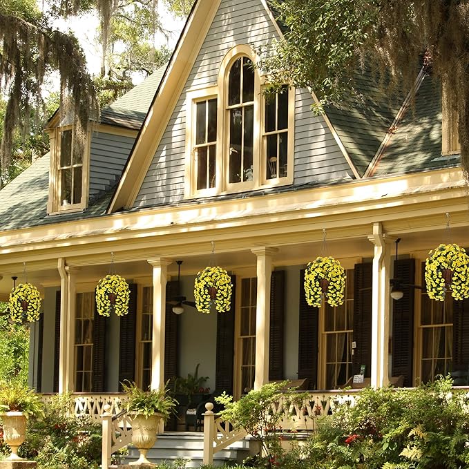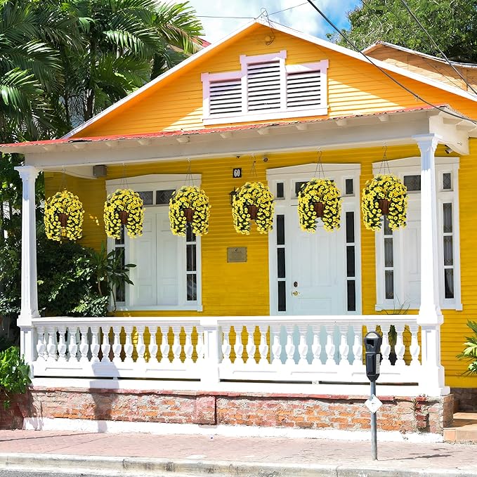 • QUALITY: The hanging flower pots and artificial daisy flowers were made of good quality material that don’t require maintenance after assembly. It’s UV resistance and won’t fade, sturdy enough for any weather. No watering needs. It looks full and beautiful all season