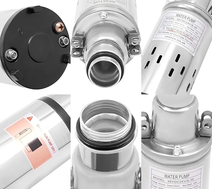 • 【PREMIUM WATER PUMP】The body and motor shaft of this submersible deep well pump are made of selected stainless steel with a fine texture, and the pump wall is thickened that is not easily deformed. Stainless steel base adopts high precision steel snap ring spring, which is effective against compression, impact and deformation.