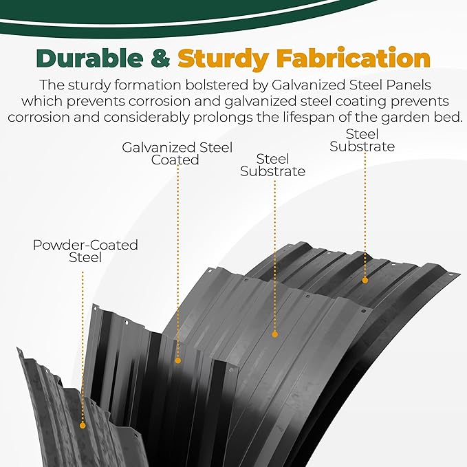 • Lightweight Galvanized Steel - The outdoor raised garden beds are made from lightweight galvanized steel, ensuring exceptional longevity and durability. Also, it prevents it from corrosion and rust, offering a long-lasting gardening solution. Moreover, the middle support strip provided exceptional strength to our lightweight Galvanized Raised Garden Bed.