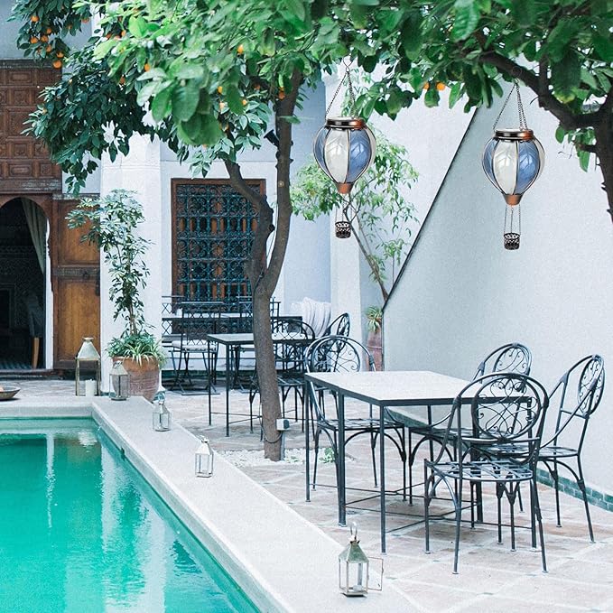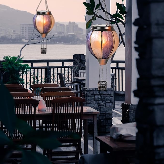 • 【Hot Air Balloon Design】This hot air balloon solar lantern is made of thick glass and a realistic flame lights. When the sun goes down, the flickering flame effect resembles a real hot air balloon, creating an amazing visual effect and adding a great atmosphere to your garden, patio and yard.