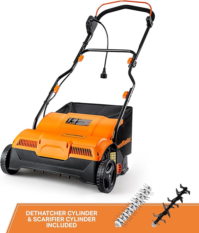 LawnMaster GVB1316 Electric 16” 13 Amp Dethatcher and Scarifier with 12 Gallon Collection Bag