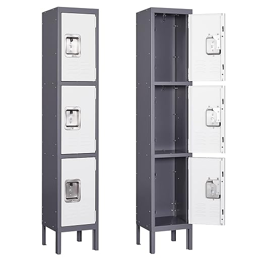 Yizosh Metal Lockers for Employees with Lock, Employees Locker Storage Cabinet with 1 Doors, Tall Steel Storage Locker for Gym, School, Office (Gray White, 3 Door)