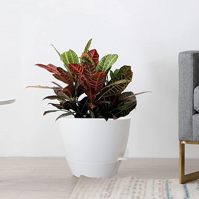 10/9/8 inch Self Watering Pots, Set of 3 Plastic Planters with Mesh Drainage Holes and Deep Reservoir for Indoor Outdoor Garden Plants and Flowers, White
