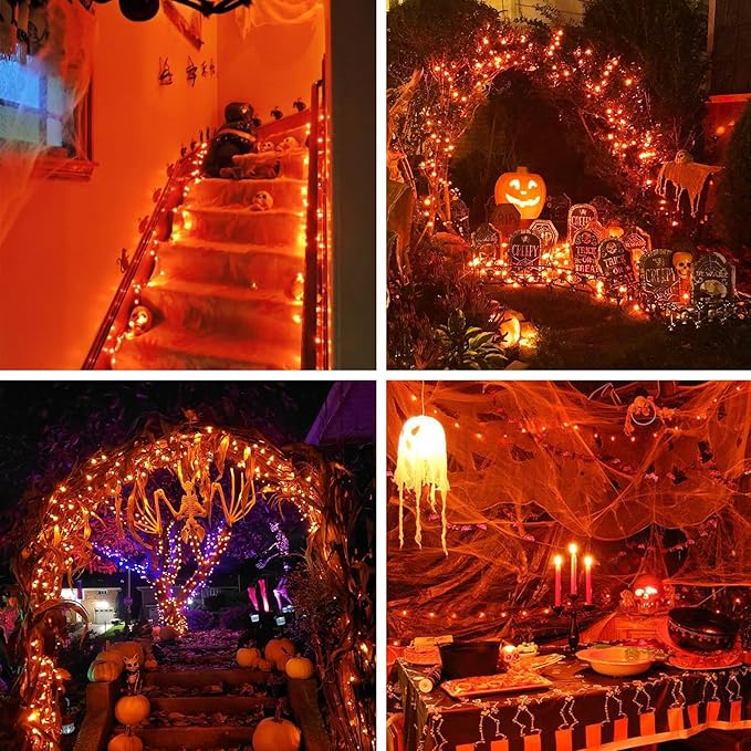 • [Widely Used Solar Fairy Lights Outdoor]: Perfect for Halloween home decor, party decorations, and outdoor lighting for gardens, fences, porches, patios, trees, rooftops, and more. These orange solar string lights bring a festive and spooky glow to both indoor and outdoor spaces.