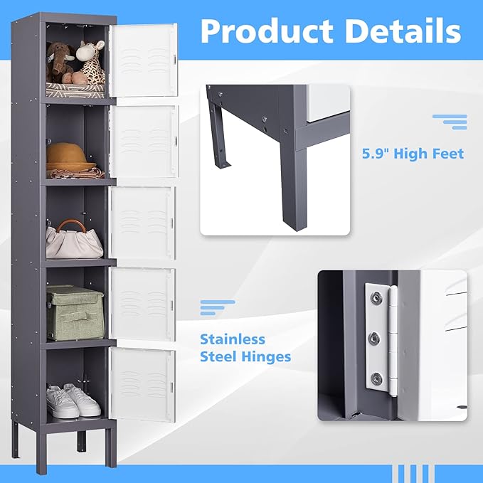 Letaya Storage Locker,5 Door Employees Metal Cabinet with Lock for School Gym Home Office Staff 66" H X 12" W X 12" D