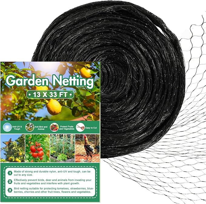 CandyHome Bird Netting for Garden, 13Ft x 33Ft Reusable Garden Netting Plants Barrier, Plant Mesh Net Protect Fruit Tree Seedlings Plants from Birds, Cicadas, Rodents, Black