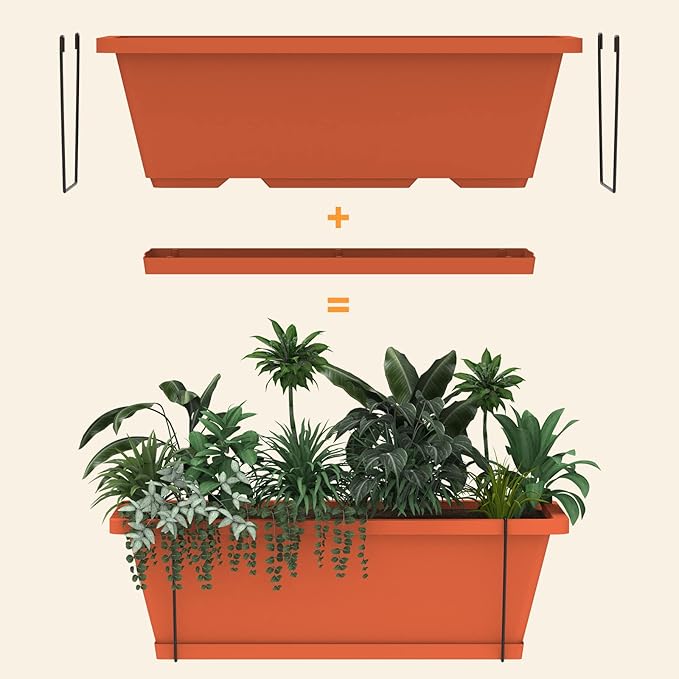 • 【Raised Planter Box】Each plastic planter bins consists of bottom drainage holes and removable tray. Excess water can be drained to ensure that the soil can breathe, thus promoting the growth of plants. (Dimension: 16.8 x 6.8 inches)