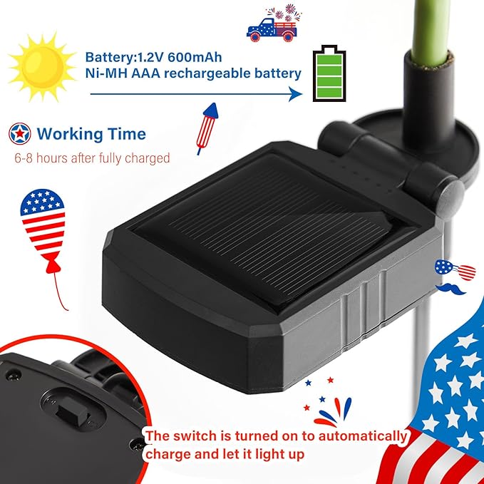• Solar Power Supply: the grave decorations for cemetery are turned off by default during the day and automatically turns on the LED at night; The battery has 600mAh large capacity, can work continuously for 8-10 hours, and it takes 6 hours to fully charge