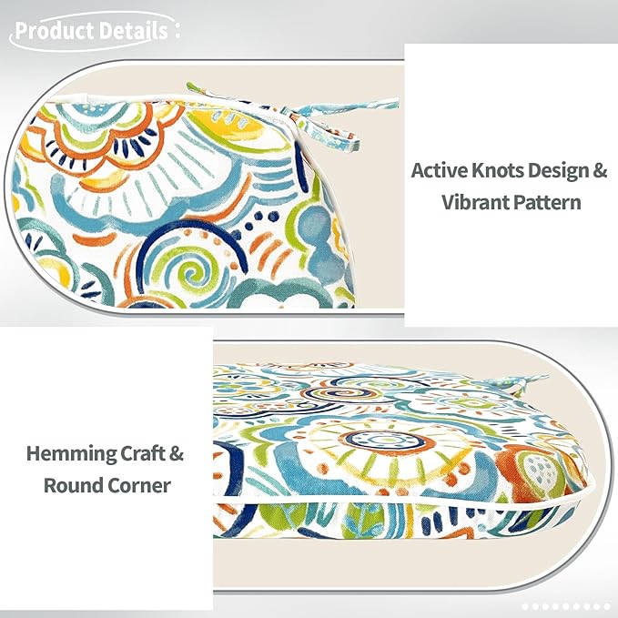 • Multiple Applications: Whether you're lounging or enjoying on your patio/balcony/garden/dining room, vibrant patterns can be adapted to your indoor and outdoor decor to add a vivid atmosphere. Attached ties keep the outdoor cushions securely in place, preventing unwanted sliding or movement while you sit.