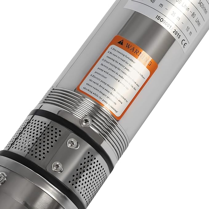 • 【QUIET OPERATION & WIDE APPLICATION】Built-in a high-quality copper motor, it produces less than 65 db noise during operation. In addition, the diving operation also creates a quiet environment and reduces its noise. It is applicable to wells with a diameter of more than 4'', suitable for extracting groundwater from deep wells, and can also be used for water-lifting projects in rivers, reservoirs, canals, etc.