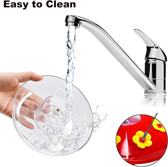 • 𝗗𝗨π—₯π—”π—•π—Ÿπ—˜ & π—˜π—”π—¦π—¬ π— π—”π—œπ—‘π—§π—˜π—‘π—”π—‘π—–π—˜ -- NO tools required, easy to assemble. The feeder cover and body are made of high-quality plastic. You can monitor the nectar level through the clear water reservoir to know when to refill it. Wash the feeder by hand, NOT dishwasher safe.