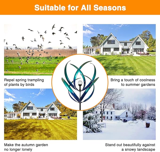 • ENHANCE GARDEN NATURAL BEAUTY: Add an attractive outdoor display by lining kinetic metal wind spinners in your garden