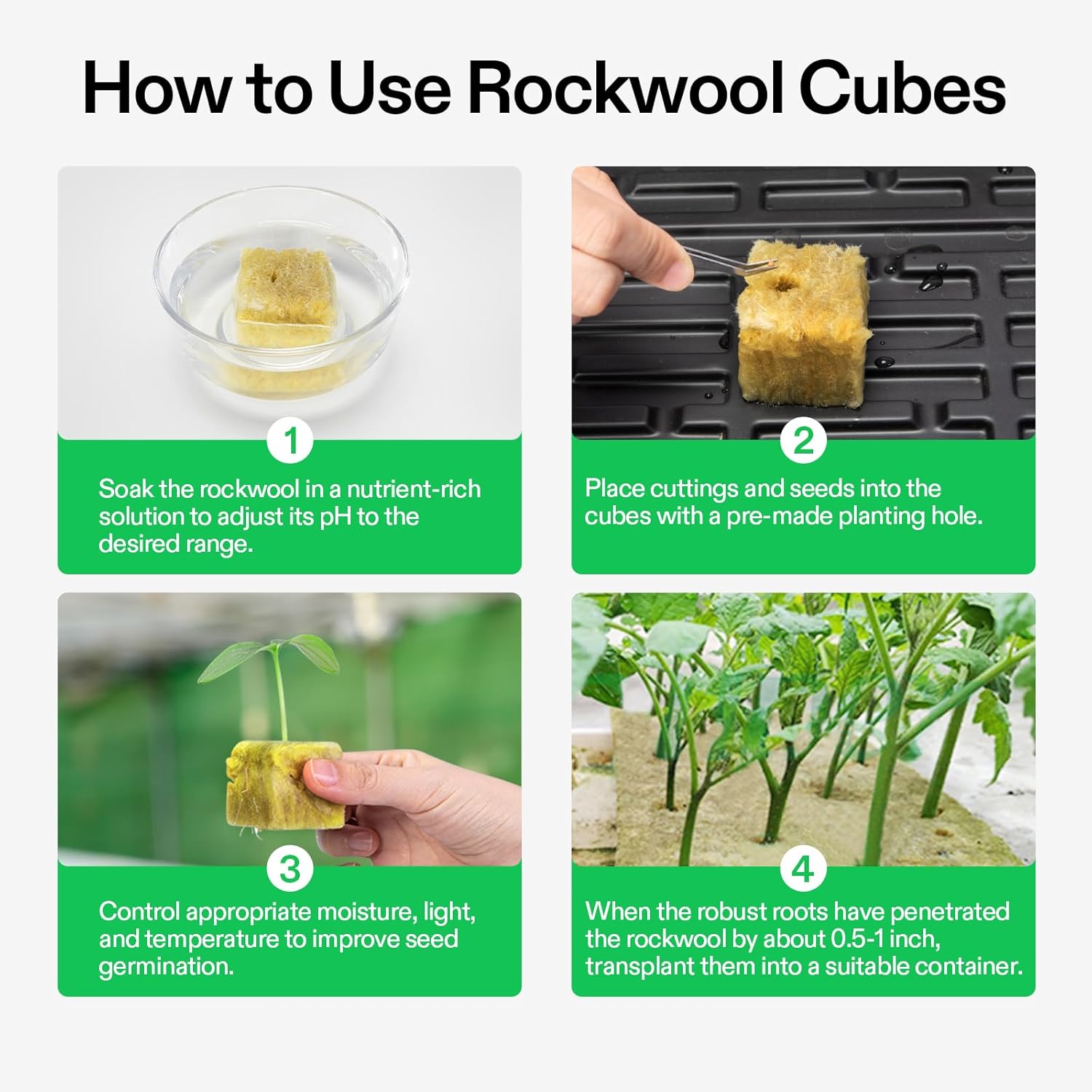 • Easy to Use & Observe: These light and fluffy rockwool cubes are easy to cut to any size; Each cube has a hole for your seeds or cuttings, and you can transfer the cubes to any medium when the roots develop; It is also easier to observe the growth on one sheet