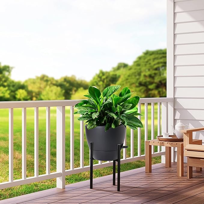 • [60OZ LARGE DEEP RESERVOIR, 2~3 WEEKS EXTRA WATER] 12inch Extra large Self Watering Pot with deep reservoir makes it easy for when go on vocation that no need someone to come over water plants and flowers. Built-in tray protects decks, patios, or indoor surfaces. (Dimension: 12'' W x 10'' H)