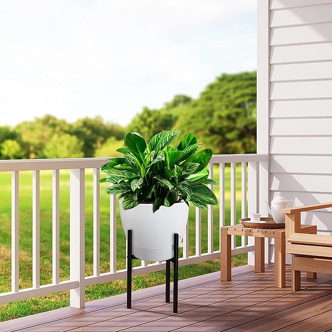 12inch Self Watering Pots, Plastic Planters with Mesh Drainage Holes and Deep Reservoir for Indoor Outdoor Garden Plants and Flowers, White