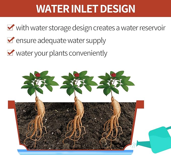 • WATER INLET DESIGN - The rectangular plant pots are designed with 2 water inlets at the bottom, so you can water your plants from the water inlet directly. This design ensures that you can water your plants well without making the tables or windowsills get wet, keeping it clean and dry.