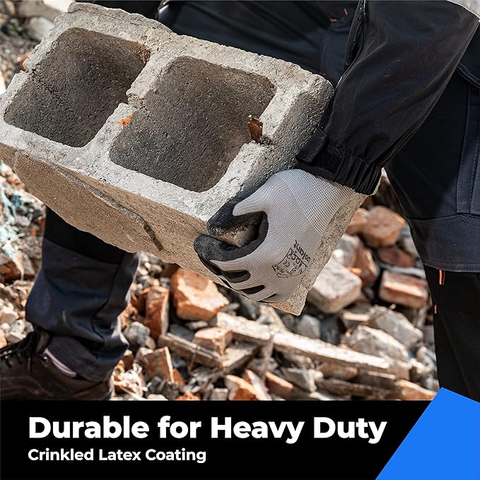 • 【Superior Grip】The unique crinkle latex coating offers superior friction for a secure hold on tools and materials, even in dry and slightly damp environments. This is a crucial feature for workers who handle heavy and bulky materials, as it can help prevent accidents and injuries on the job.