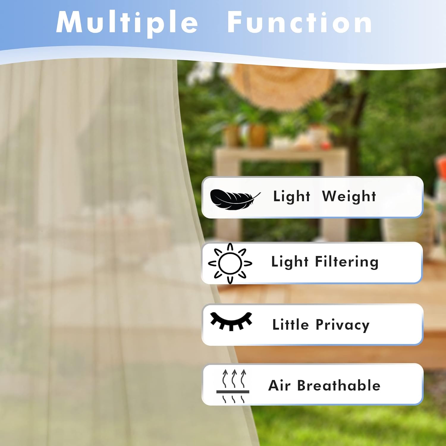 • Waterproof Polyester Fabric - Made with high quality polyester voile fabric that is waterproof and weather-resistant. These outside curtains are designed to provide long-lasting protection against strong sunlight, UV rays.
