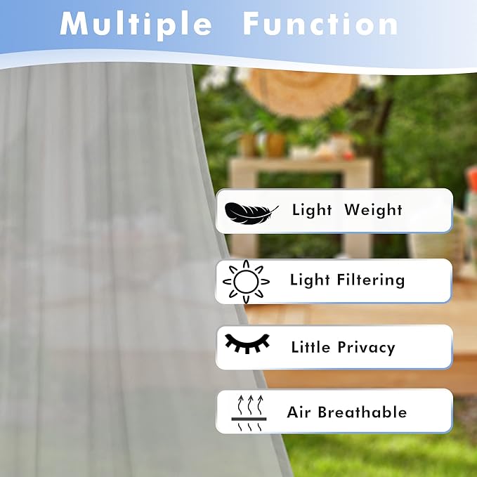 • Waterproof Polyester Fabric - Made with high quality polyester voile fabric that is waterproof and weather-resistant. These outside curtains are designed to provide long-lasting protection against strong sunlight, UV rays.