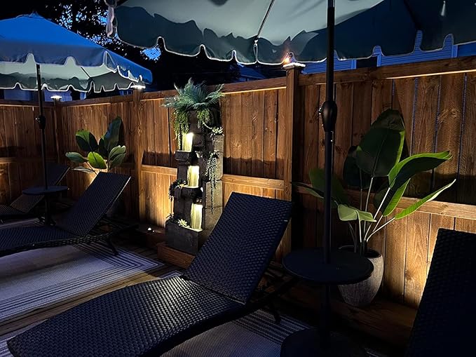 • GARDEN DECOR & LIGHT: Modern Design Mixed with Natural Elements, the water fountain outdoor with Warm Glow LED Lights is the Perfect for Your Outdoor Decor and Fits Put on Your Porch, Backyard, Garden or Lawn.