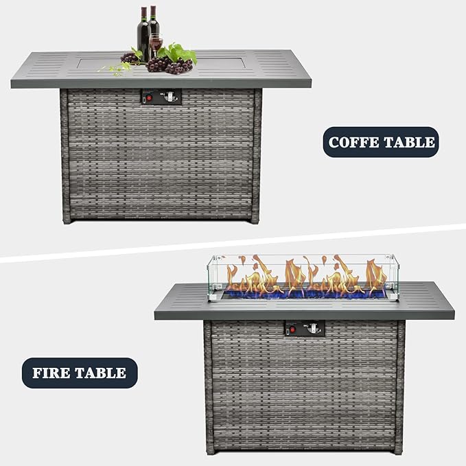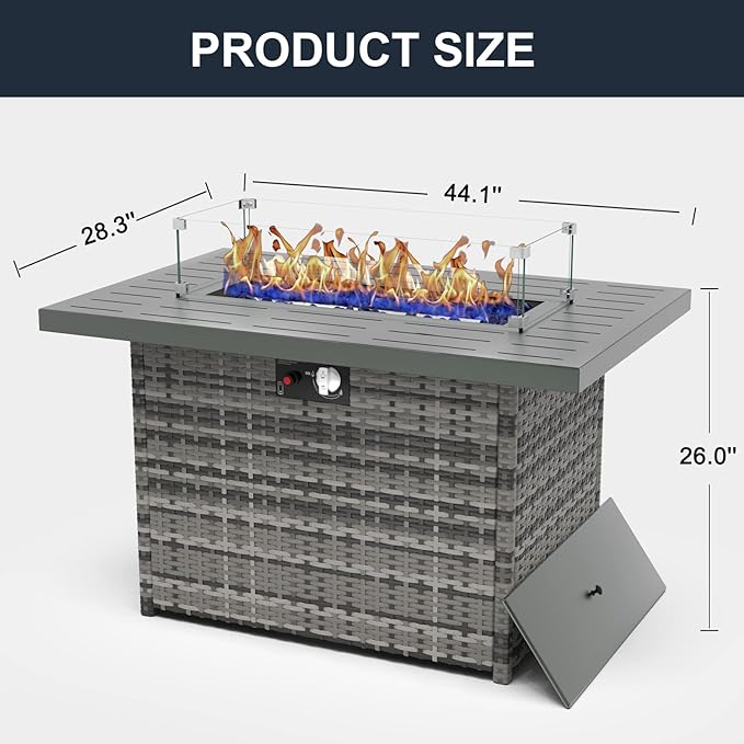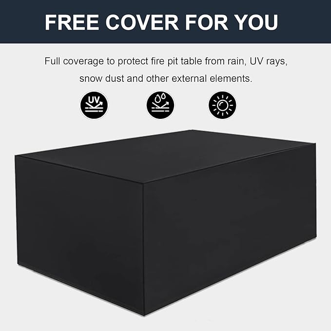 • WHAT YOU WILL GET: Our fire pits table for the outside come with all the accessories you need to install or use, including a rectangular fire pit table, a wind guard, a waterproof cover, a removable lid, and blue glass stone.