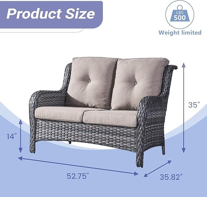 • 【Deep Seating & Comfort Cushions】Deep and wide seats with 4-inch thick sponge-padded cushions. The cushions offers good resilience, not easy to deform or slide, also protect your lumbar and offer a comfortable sitting experience.