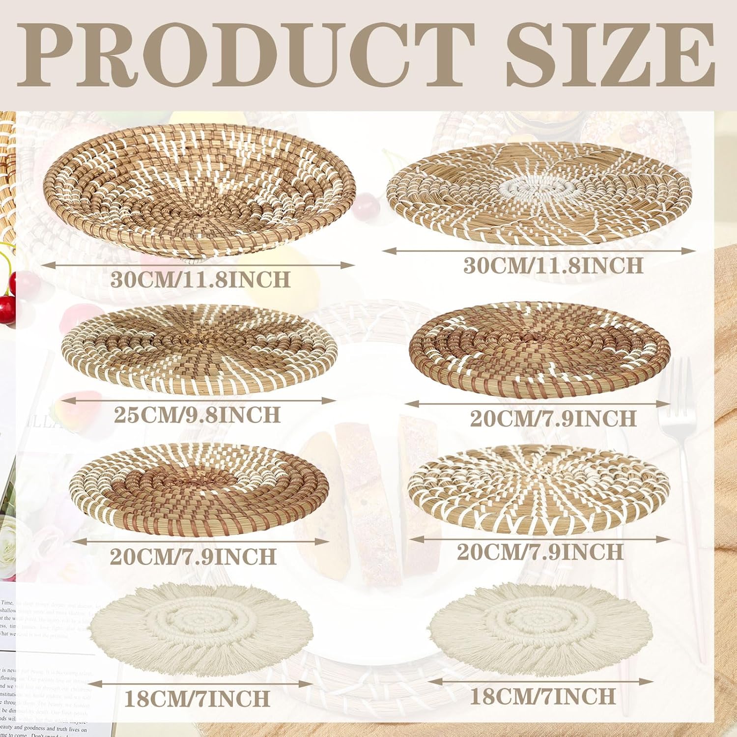 • Abundant to Choose: you will receive 8 pieces of woven wall baskets in different styles, the sizes vary from 7 inch to 11.8 inch, suitable for wall decorating use, the quantity and sizes are enough for your daily needs and replacement demands, you can mix and match them as you need, making your furnishing styles more attractive