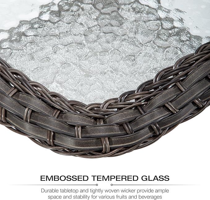 • Sturdy Frame: The wicker chairs are based on a powder-coated steel frame. The high-strength production technique enables the chairs to be strongly resistant to bumping and pressing. The sturdy frame can hold a max bearing up to 300 lbs