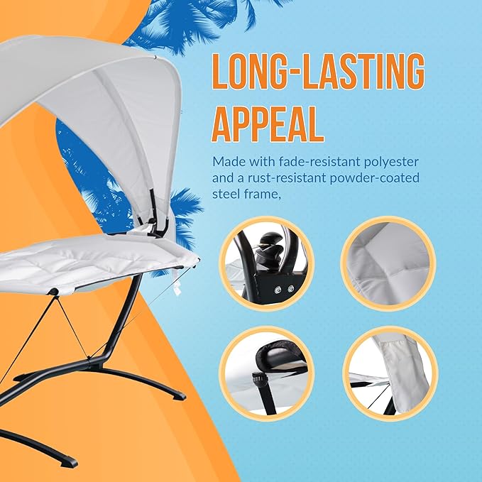 • INCLUDES COMPLETE SET WITH WARRANTY – Comes with a steel stand, hammock, canopy, and assembly hardware for quick setup. Backed by a 1-year limited warranty, ensuring peace of mind and reliable performance.
