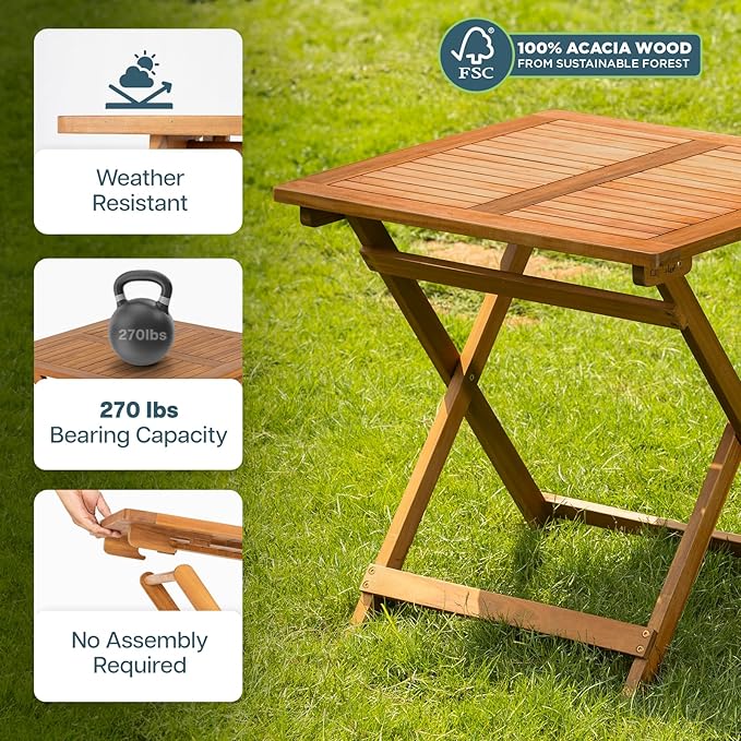 • DURABLE ACACIA WOOD CONSTRUCTION: Enjoy a long-lasting outdoor table made from FSC certified acacia wood, known for its strength and durability. ideal for any weather condition, this table will be a reliable addition to your outdoor space for years to come.