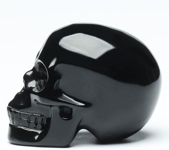 2''Natural Black Obsidian Crystal Skull Head Hand Carved Reiki Healing Stone Statue Healing Home Office Art Room Decoration