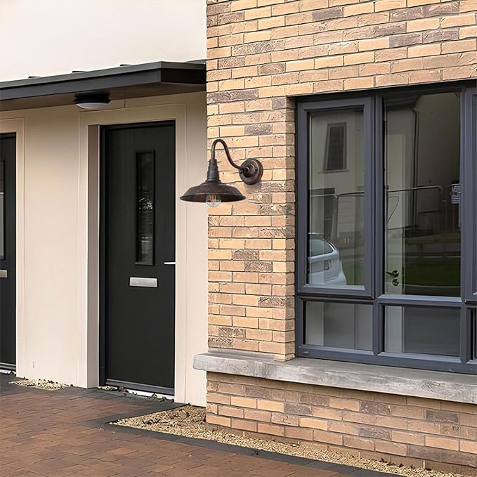 • ★【Gooseneck Outdoor Wall Sconce】The set of 2 outdoor barn light with elegant gooseneck arm combines vintage and industrial styles, bringing an attractive and classy look to your home, easily sublimate your various decorations and create a pleasant atmosphere.