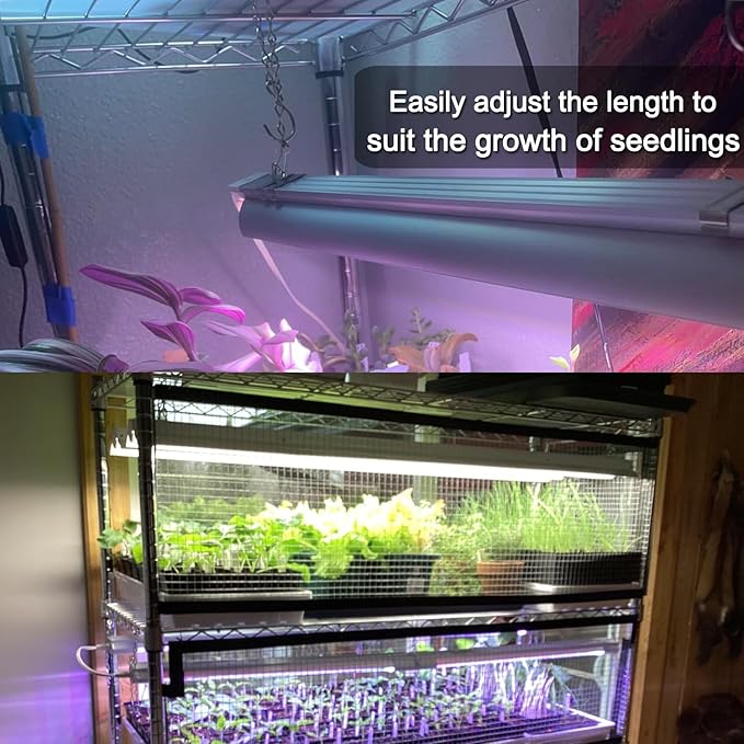 • Free combination -- Each of our chains has 2 S-shaped hooks to make the suspension stronger and safer. Multiple single chains can be combined into 1 suspension or multiple single chains can be connected into one long enough chain for use. It is suitable for hanging grow lights for seedling. The hooks of chain are open so you can easily adjust the length. Perfect for raising the lights as the seedlings grow.