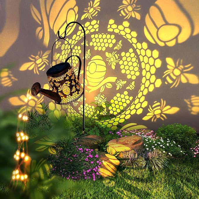 Solar Watering Can Outdoor Lights Garden Decor,Bee Hanging Lantern Waterproof Landscape Lights Outside Decoration for Yard Porch Patio Pathway Gardening Gifts(with 32 inch Shepherd Hook)
