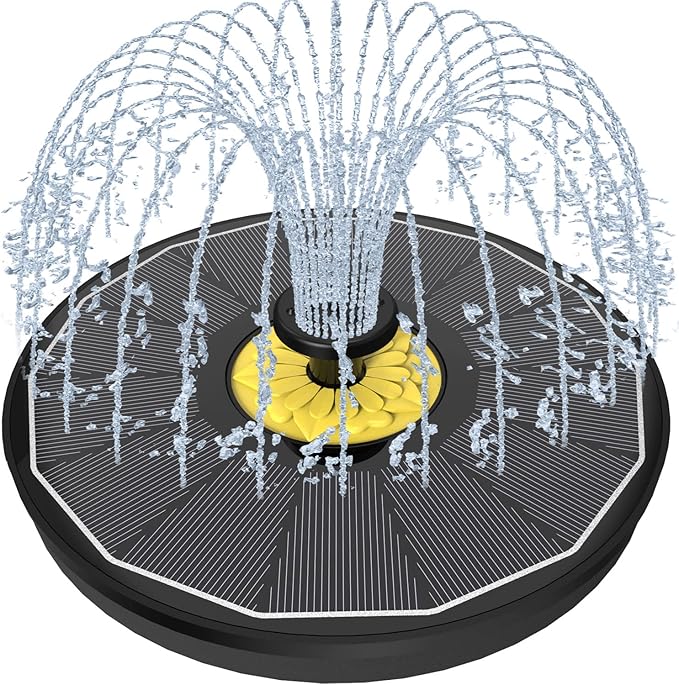 • Elegant Design:This solar powered fountain pump is both functional and stylish;Its yellow centerpiece design resembles a blooming flower,adding a touch of beauty to any garden or outdoor space