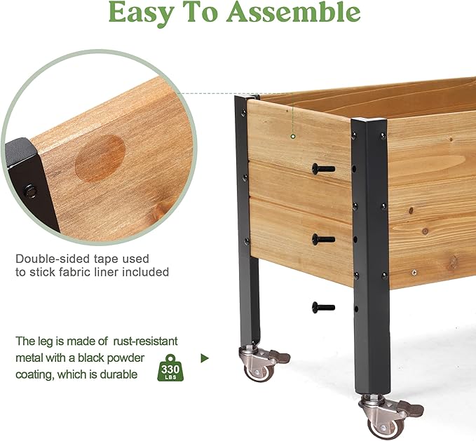 • 【Material】Planter box with wheel that can be locked. It is made of natural fir wood, which can withstand rain corrosion well. which is very environmentally friendly.Instead of recycled wood, use metal legs for support, which are stronger and more durable.