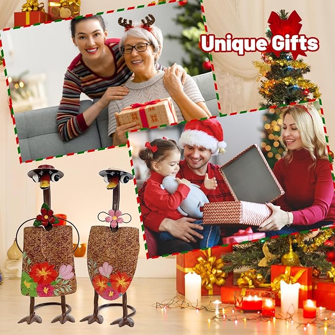 • 【Exquisite Metal Patio Decor】Unique gardener ducks shovel decoration comes alive in vivid colors and exquisite detailing. The captivating floral-decorated duck garden statues will lend a joyful vibe to your lawn decor, making them a delightful outdoor decor