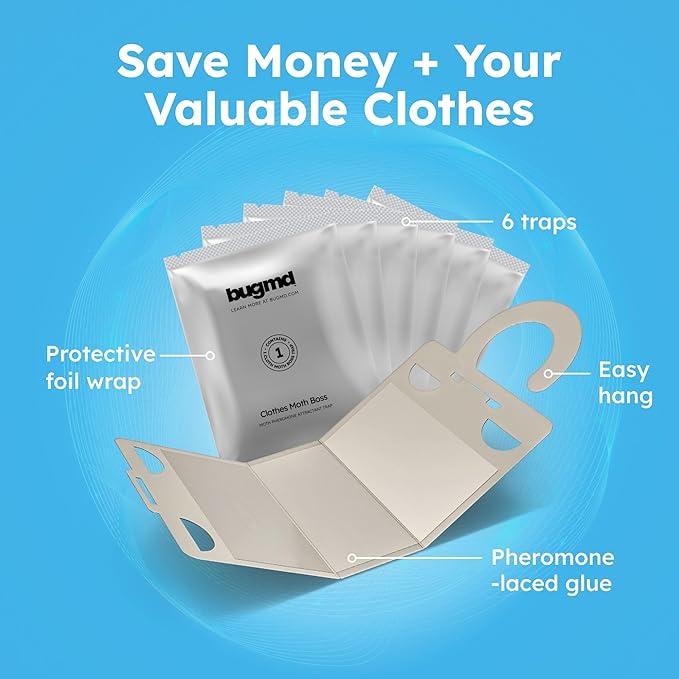 • CLOTHES MOTH TRAPS – Pheromone-infused sticky boards attract and trap clothes moths in closets, wardrobes, and drawers; each pack contains 6 pre-baited traps for effective moth control.
