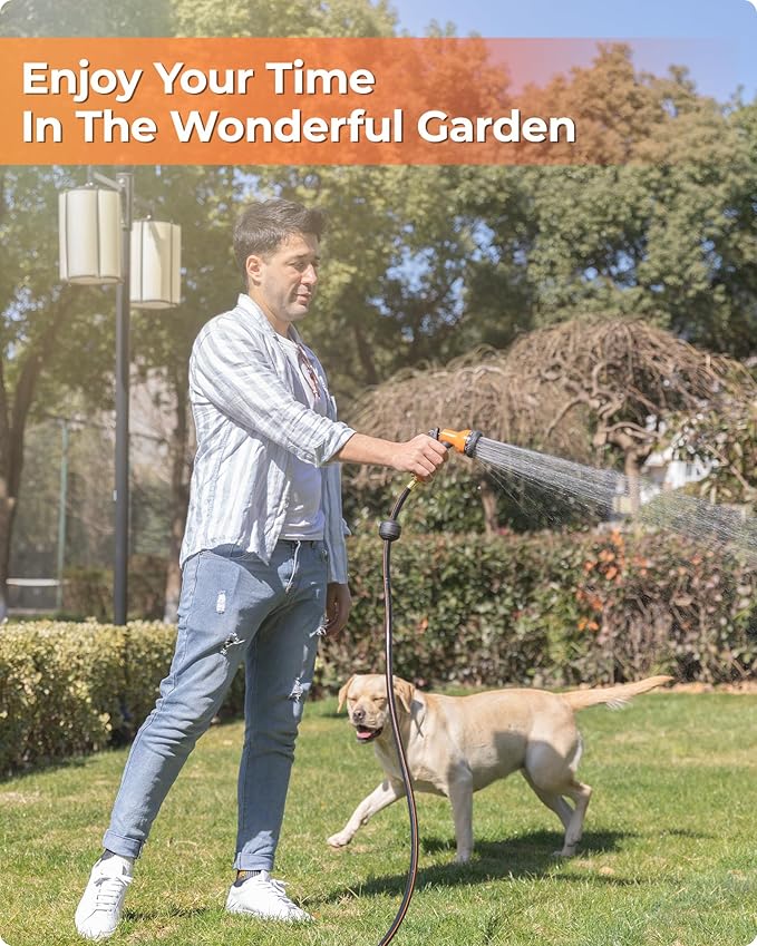 • 【9-pattern Nozzle】9 patterns nozzle available to have different spray ways which includes shower, center, flat, soaker, mist, jet, triangle, rinse and cone, meet various watering needs of customers.