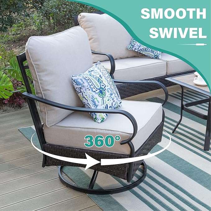 • All-weather Resistant: Built to withstand all weather conditions, this outdoor furniture features with thicken steel frame with E-coating for excellent performance on anti rust and long-lasting durability. The steel slat cross bar on the bottom adds stability and weight capacity up to 900lbs(3 seat sofa) and 350lbs(single sofa chairs), ensuring a luxurious outdoor experience for you and your guests
