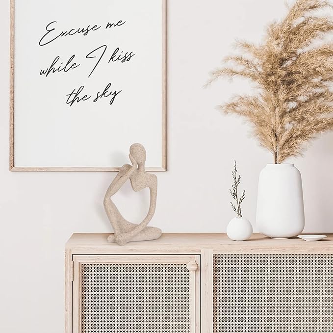 INNOLITES Boho Decor Thinker Statue Abstract Art Sculpture, Sandstone Resin Collectible Figurines for Home Living Room Office Shelf Decoration (Sandstone Left)