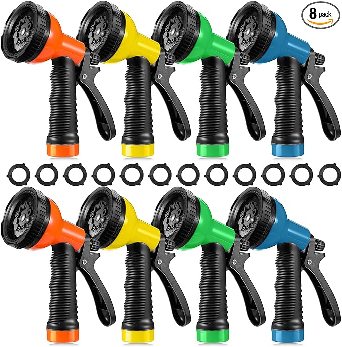 8 Pcs Garden Hose Nozzle Sprayer 10 Adjustable Watering Patterns Heavy Duty High Pressure Water Gun for Watering Plants Washing Cars and Showering Pets