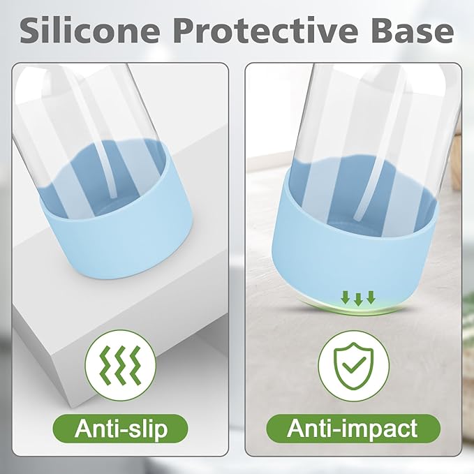• Silicone Sleeve Protection: The bottom of the glass spray bottle is protected by an added silicone sleeve. The soft silicone is non-slip and slows the impact on the bottle, making glass bottle more sturdy.